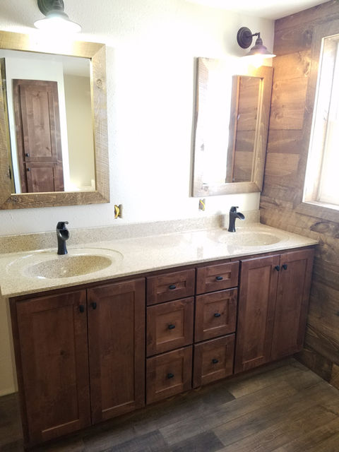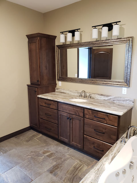 With Ultimate Woodworking, your options are unlimited. We build vanities of all sizes and even have bathroom linens, tub surrounds, and bathroom mirrors to match. Definitely something a big box store or local lumberyard cannot do for you.